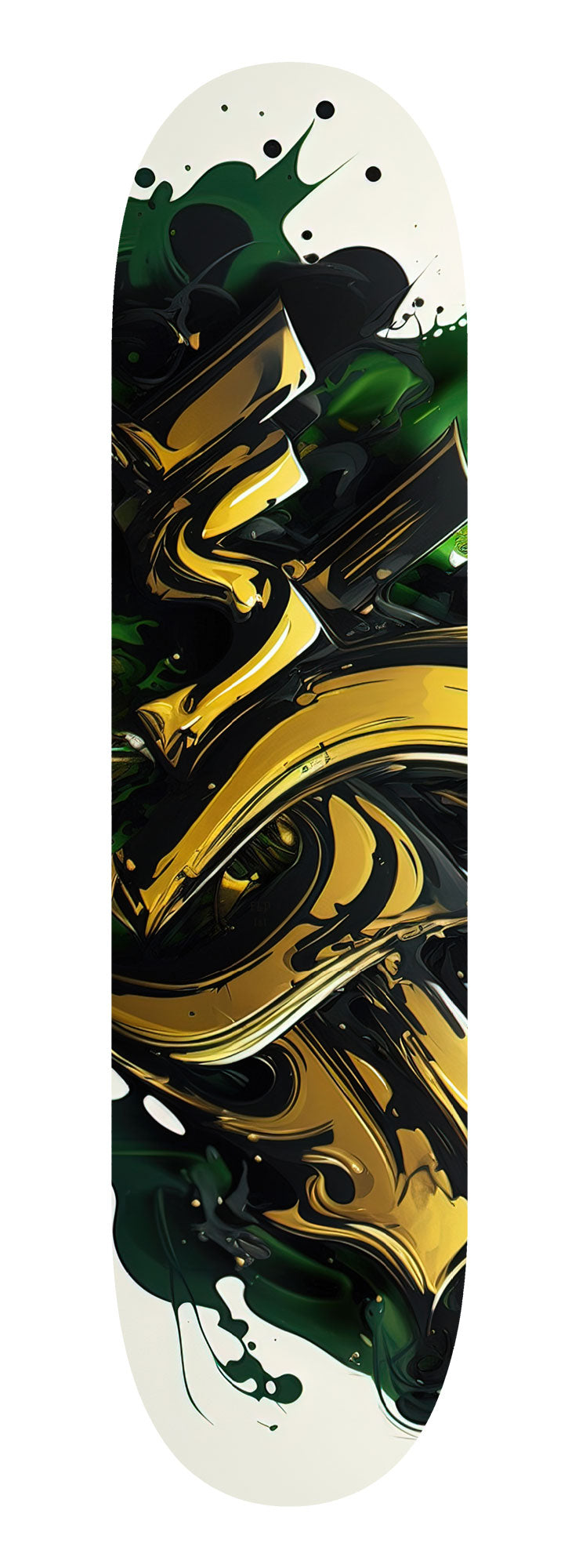 Amidst the lush greens and shimmering gold, there is a sense of balance and unity, as if the elements of the composition are in perfect harmony with each other.