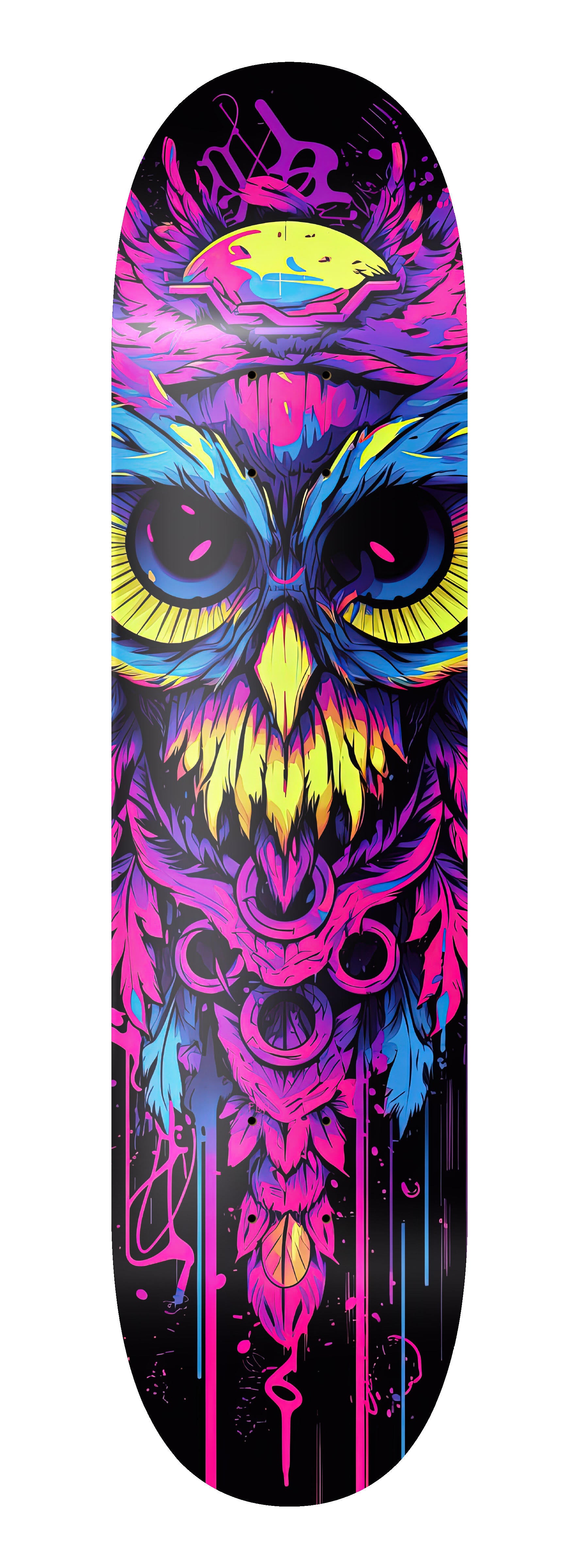 The neon paint seems to defy gravity, dripping and pooling in unexpected patterns that create a sense of movement and dynamism within the design. It's as if the owl is caught in a moment of transformation, its form melting and morphing with the flow of the wet paint.